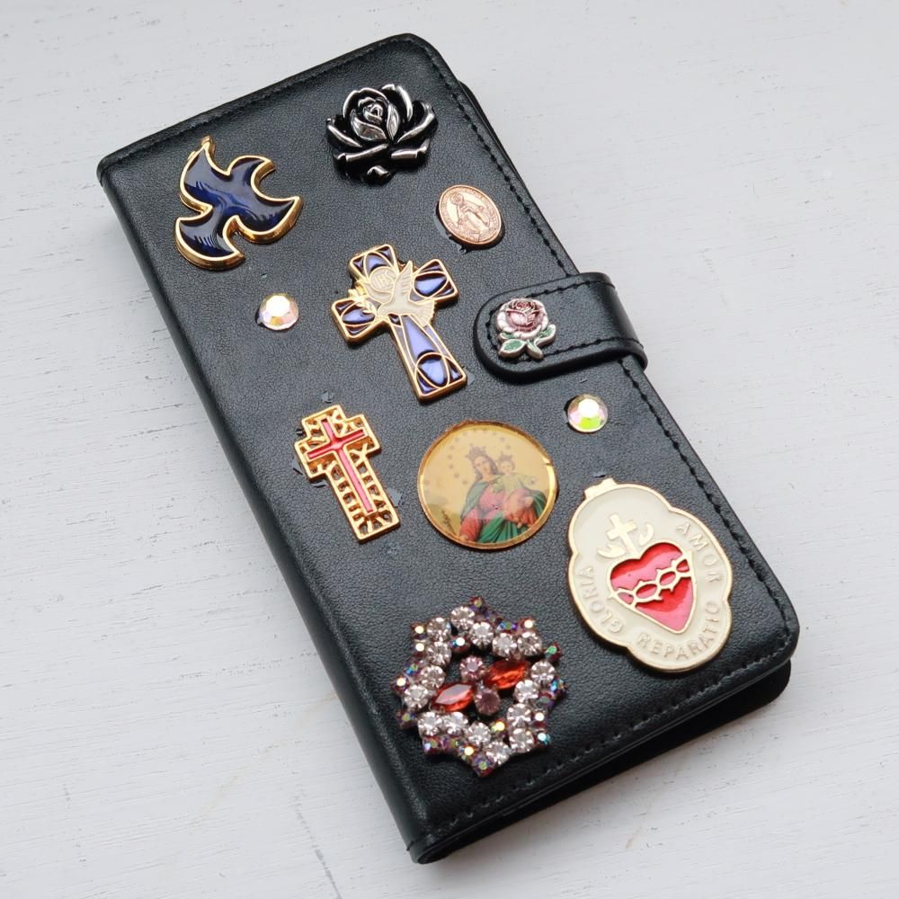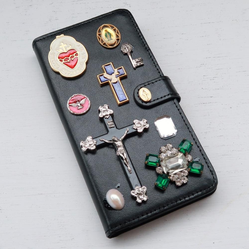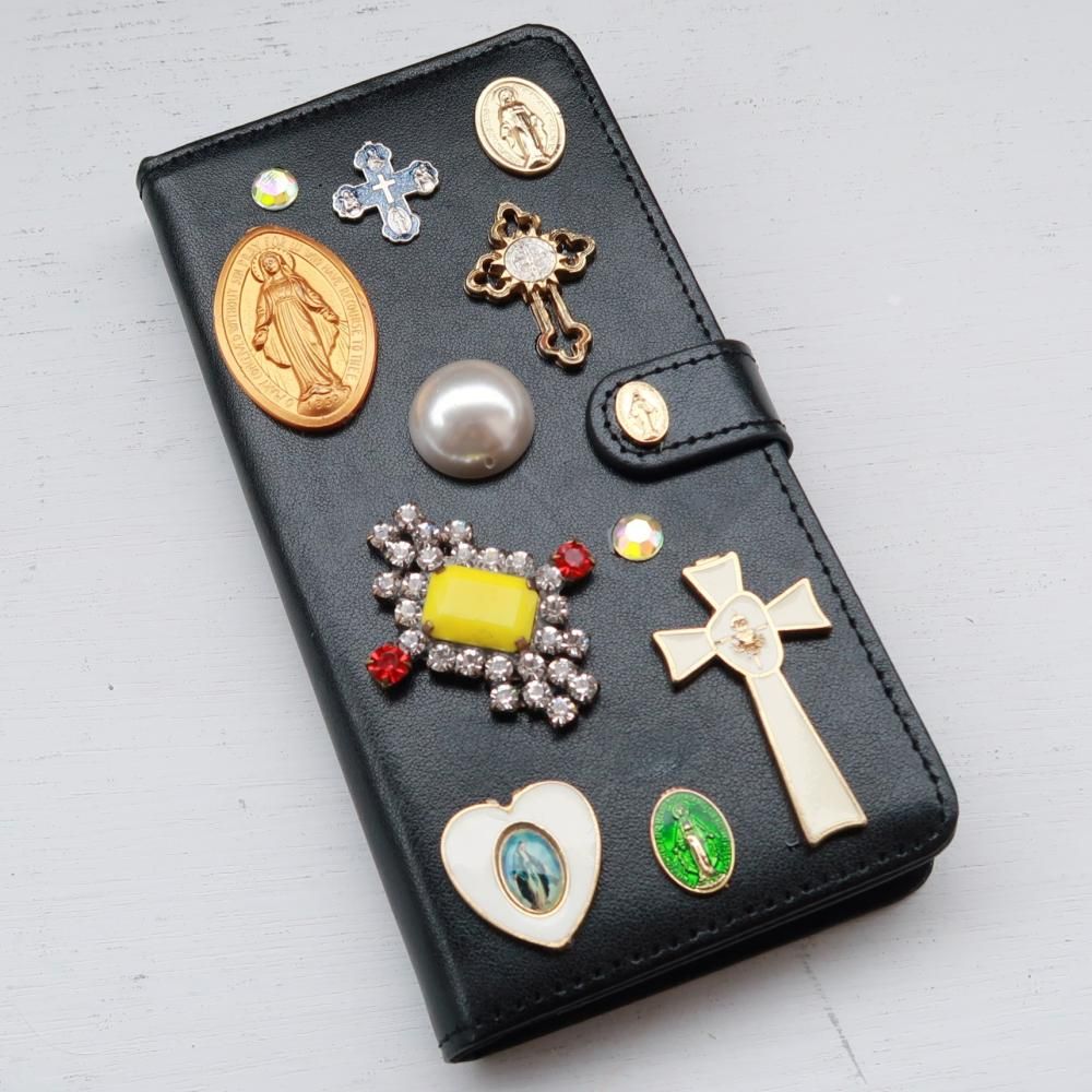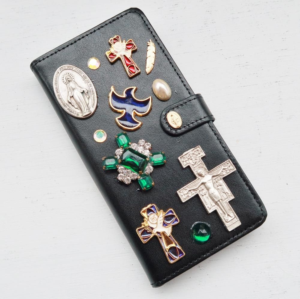The Delight LEATHER BIJOU & MEDAI CROSS FLIP SMARTPHONE CASE ¶ ( ¥Ó¥¸¥å¡¼¡õ¥á¥À¥¤ ¥¯¥í¥¹ ¼êÄ¢·¿ ¥¹¥Þ¡¼¥È¥Õ¥©¥ó ¥±¡¼¥¹¡Ë¥Ö¥é¥Ã¥¯