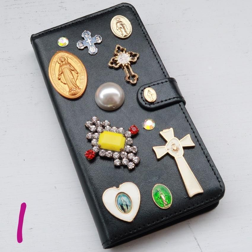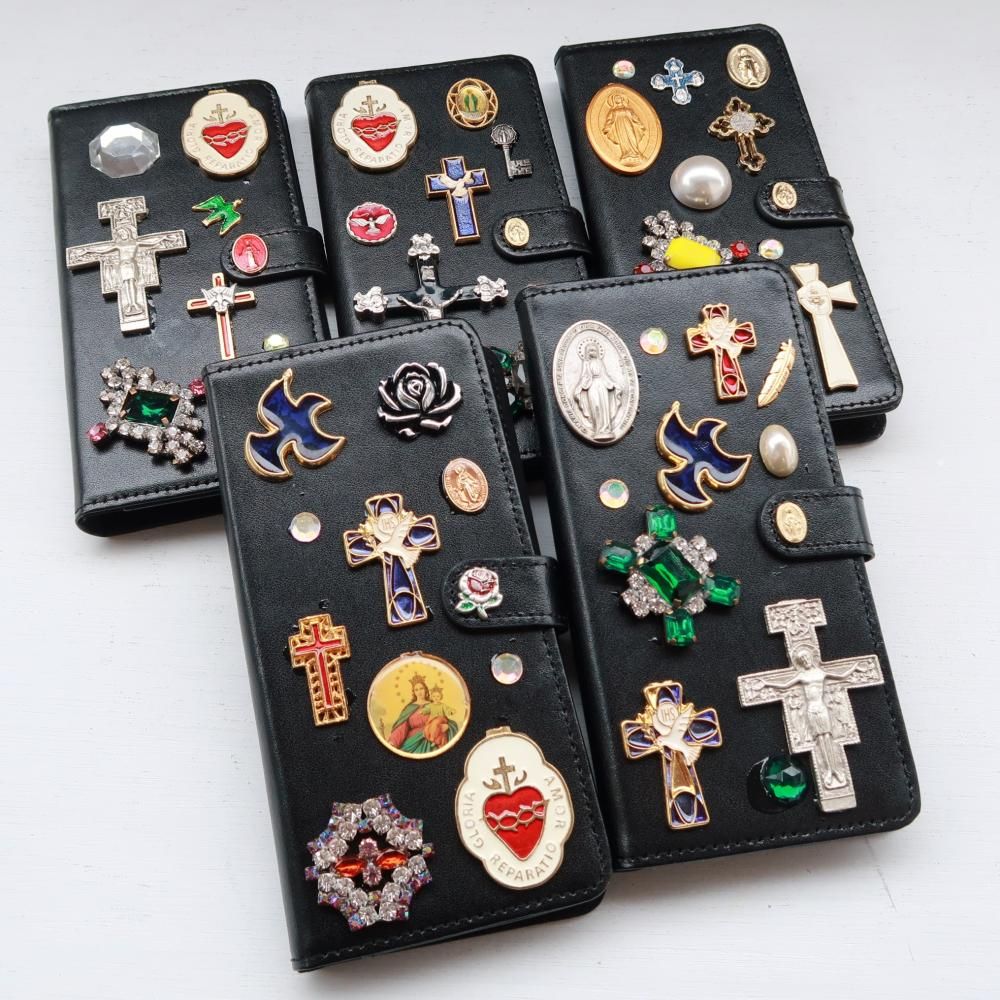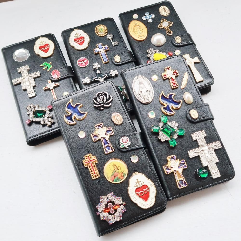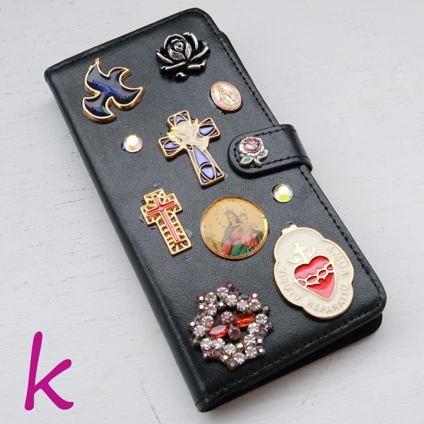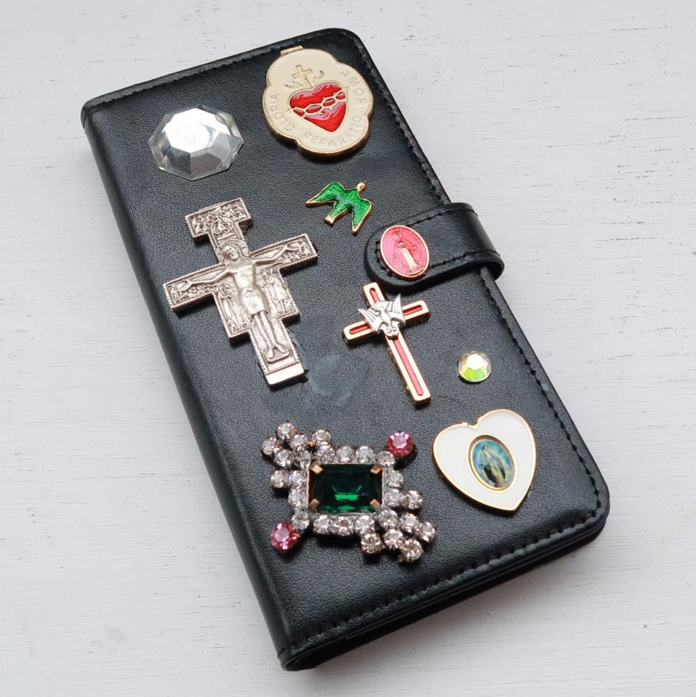 The Delight LEATHER BIJOU & MEDAI CROSS FLIP SMARTPHONE CASE ¶ ( ¥Ó¥¸¥å¡¼¡õ¥á¥À¥¤ ¥¯¥í¥¹ ¼êÄ¢·¿ ¥¹¥Þ¡¼¥È¥Õ¥©¥ó ¥±¡¼¥¹¡Ë¥Ö¥é¥Ã¥¯