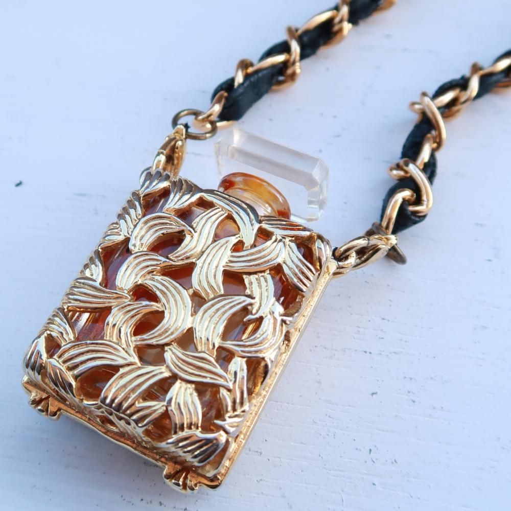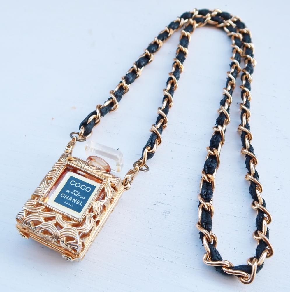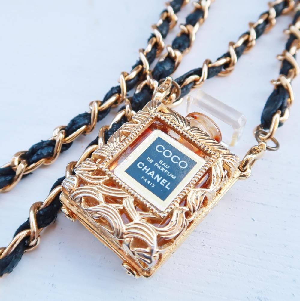 CHANEL vintage (シャネル ヴィンテージ)PERFUME BOTTLE NECKLESS 香水瓶 レザーチェーン ネックレス COCO