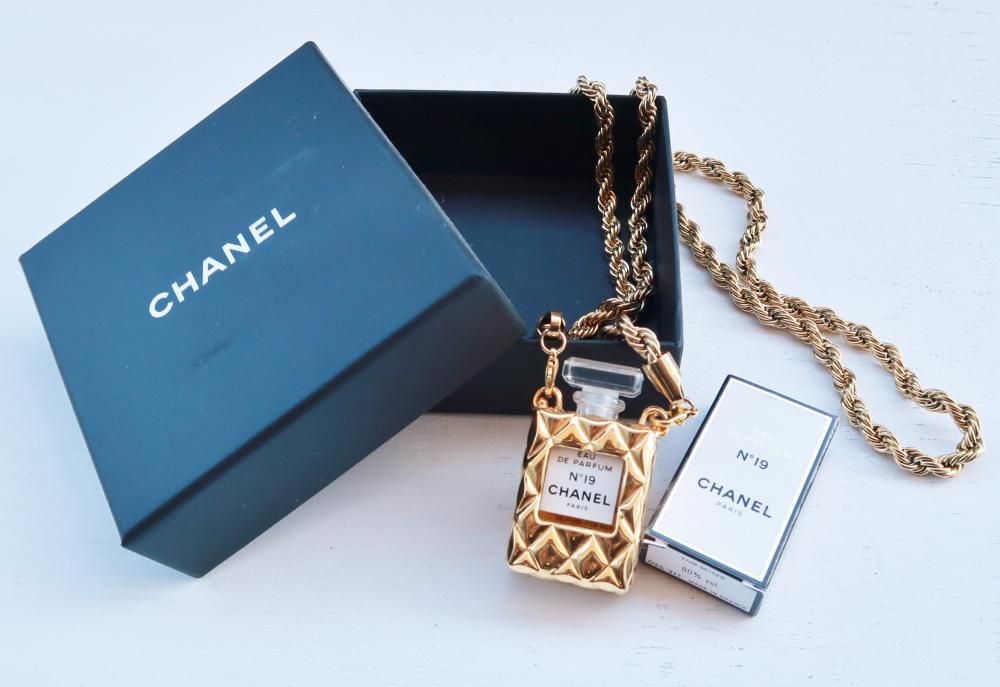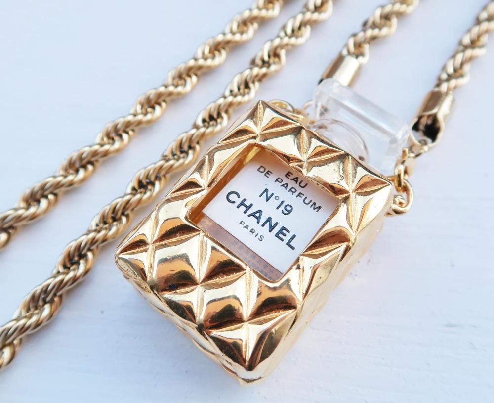 CHANEL vintage (シャネル ヴィンテージ)MATERASSE PERFUME BOTTLE NECKLESS マトラッセ 香水瓶 レザーチェーン ネックレス NO.19