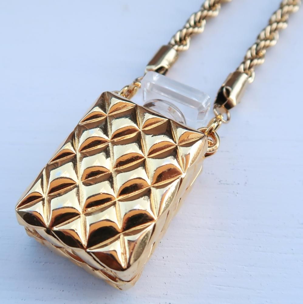 マトラッセデザインのケースにレザーの編み込みチェーンとミニ香水のセットのレアな素敵なアイテム♪