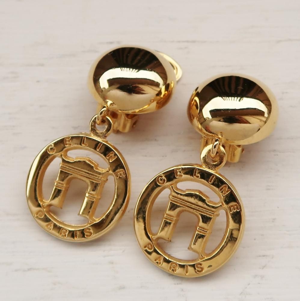 CELINE VINTAGE 凱旋門 モチーフ ロゴ イヤリング ゴールド